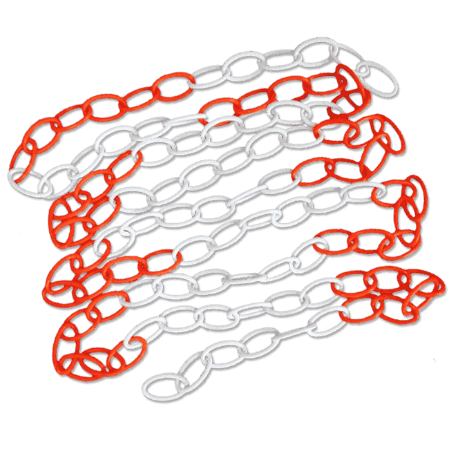 Lanțul ornamental din plastic este utilizat pentru legarea mai multor conuri portocaliu-reflectorizante flexibile intre ele, asigurând delimitarea anumitor zone.
